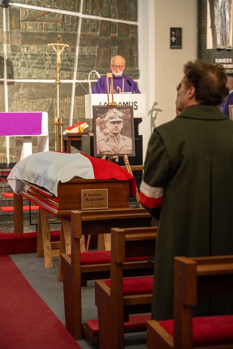 Bóg, Honor i Ojczyzna, dobrze wiemy że te trzy słowa były w sercu i w życiu osób, które dzisiaj tutaj żegnamy. Wiemy że Bóg był dla nich ważny. Czytamy ich historię i wiemy że kierowali się w swoim życiu Honorem. Ale pozostało jeszcze jedno, ostatnie słowo – Ojczyzna. Kiedy odchodzili z tego świata – w 1969 roku, w 1976, 1979, 1980 – to wtedy zapewne wielu mówiło, że to ich ostatnia droga. Ale życie pokazało że to nie była ich ostatnia droga, bo jeszcze pozostało jedno słowo – Ojczyzna. I dziś ruszają w swoją ostatnią drogę. Wracają do Ojczyzny, do tej ziemi, którą ukochali, której służyli, za którą walczyli. Dziś dopełniają się te trzy słowa – podczas Mszy pogrzebowej mówił ks. Jacek Laskowski, proboszcz parafii św. Karola Boromeusza na warszawskich Powązkach. 3 grudnia 2023 w kościele św. Andrzeja Boboli w Londynie pożegnaliśmy gen. Stefana Kopańskiego i jego żonę Janinę oraz ppłk Stefana Eichlera i jego żonę Felicję. Po latach ich doczesne szczątki, zostaną pochowane w Polsce.