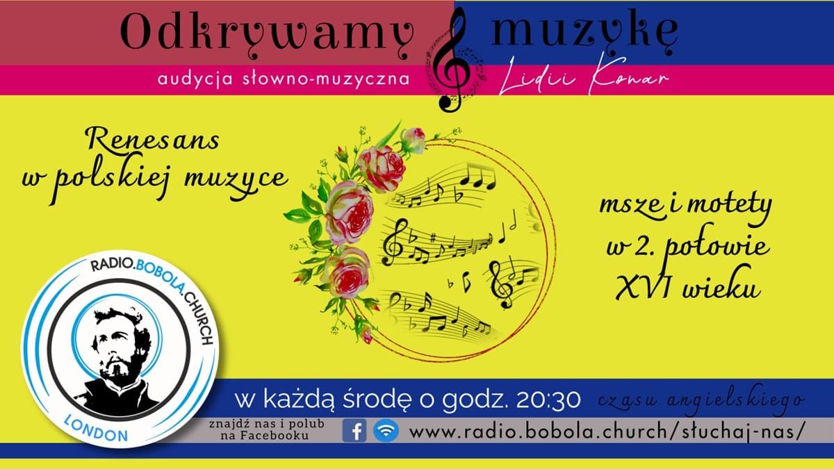 „Odkrywamy muzykę” to audycja słowno-muzyczna Lidii Konar, której można posłuchać w każdą środę po godzinie 20:30 czasu angielskiego. Autorka z wykształcenia jest historykiem oraz dziennikarką, również absolwentką Szkoły Muzycznej II stopnia w klasie śpiewu solowego. Pochodzi z pięknej miejscowości Tęgoborze k. Nowego Sącza. Jest autorką artykułów o tematyce publicystycznej, historycznej, duchowości katolickiej, a także prezenterką polonijnej audycji Śniadanie po polsku w aberdońskim radio SHMU Fm. Obecnie współpracuje z portalem Aleteia, kwartalnikiem diecezji Aberdeen Light of the North i dwutygodnikiem The Scottish Catholic.